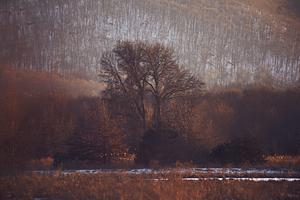Bare trees kissed by the soft golden light of a winter sunset. A winter scene in the beautiful Hudson Valley.